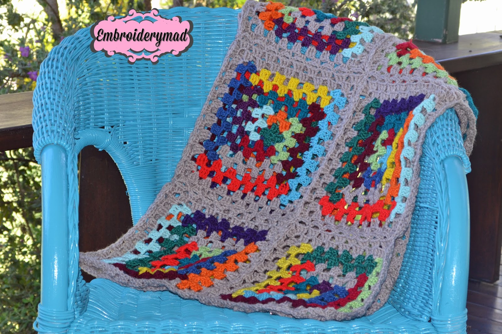 I have finished the 20 blocks and now I am joining all the squares together. This was my first time at joining squares, as you go. The directions were very easy to follow and you can find them here. After I finish joining the squares I will be putting a border around all of the rug. I feel very pleased with what I have achieved as I am only learning to crochet.