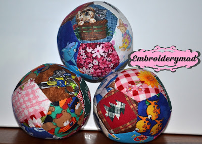 I have had the pieces for these balls cut out for a very long time, I am going through and trying to catch up on all my U.F.O.S. I think they turned out really well and as they are made all by hand ( I am not really into hand work), but it is something that I can do while watching TV at night.